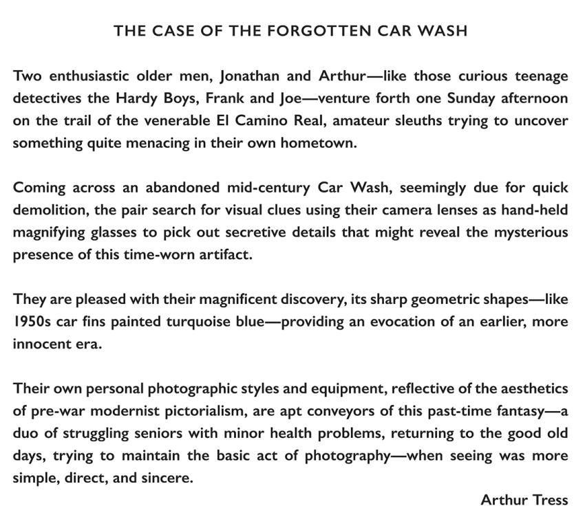 | An outing in 2022 to an abandoned mid-century modernist car wash resulted in Arthur and Jonathan At The Car Wash. This limited-edition photographic albums presents fourteen images by each photographer on alternate facing pages. |  |